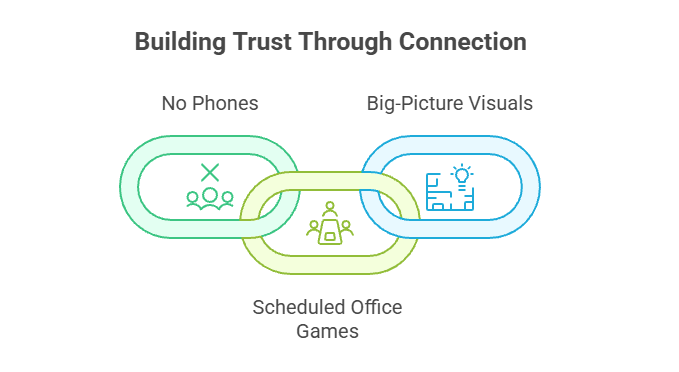 The idea is simple: if you want a team that feels high-trust, high-energy, and genuinely connected, you can’t leave it to chance. You have to design the conditions where that’s likely to happen and repeat them until they become normal.
