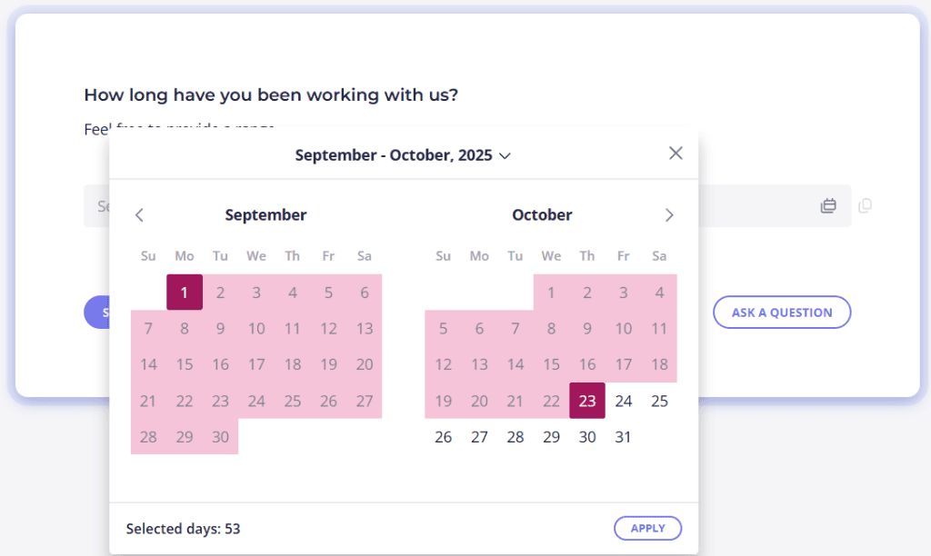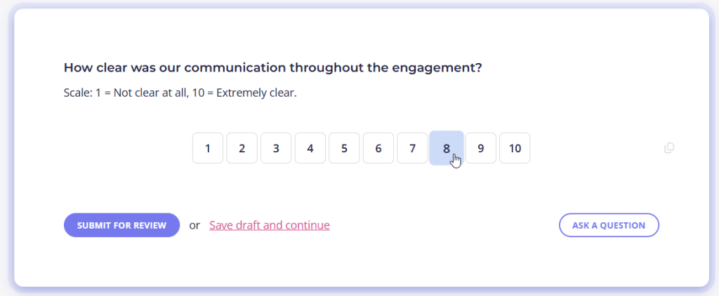 This depends on your service model, but most professional firms send a client satisfaction questionnaire at key milestones such as after onboarding or at the end of a project. Sending it at the right moments helps you capture meaningful feedback while the experience is still fresh for your clients.