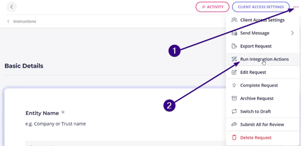 If you selected manual integration, new clients will be created in XPM when you click Run Integration Actions in the request menu: